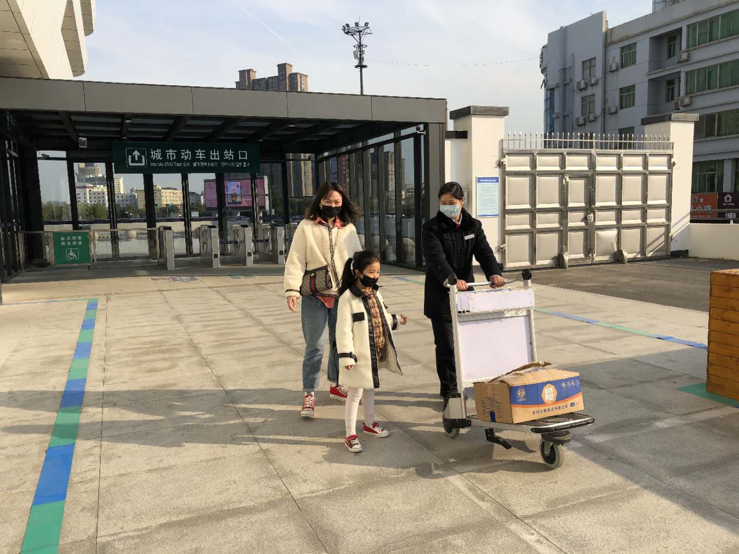 4月25日下午,乘坐第一班S3109的旅客大多數都是出行游玩的乘客。和往常一樣,城市動(dòng)車(chē)組的站務(wù)員們在各自的崗位上值守著(zhù),這時(shí)一位年輕的母親帶著(zhù)三歲的孩童,懷里還抱著(zhù)一個(gè)很沉的大紙箱很吃力,緩慢地往站臺里走來(lái)。站務(wù)員劉倍倍趕忙上前接下她手中的大紙箱,減輕了她很大的負擔。在她出示連易通二維碼和進(jìn)行完安檢后,站務(wù)員韓雪和劉倍倍幫她把紙箱放在座位旁。車(chē)次開(kāi)始檢票時(shí),站務(wù)員們將紙箱放在站內的行李推車(chē)上,劉倍倍將其一直送到車(chē)廂內。這位母親連聲道謝說(shuō):“太麻煩你們了,你們城市動(dòng)車(chē)的服務(wù)真是太貼心了!”劉倍倍微笑的說(shuō):“能幫到您就是我們最開(kāi)心的事情?!?/span>