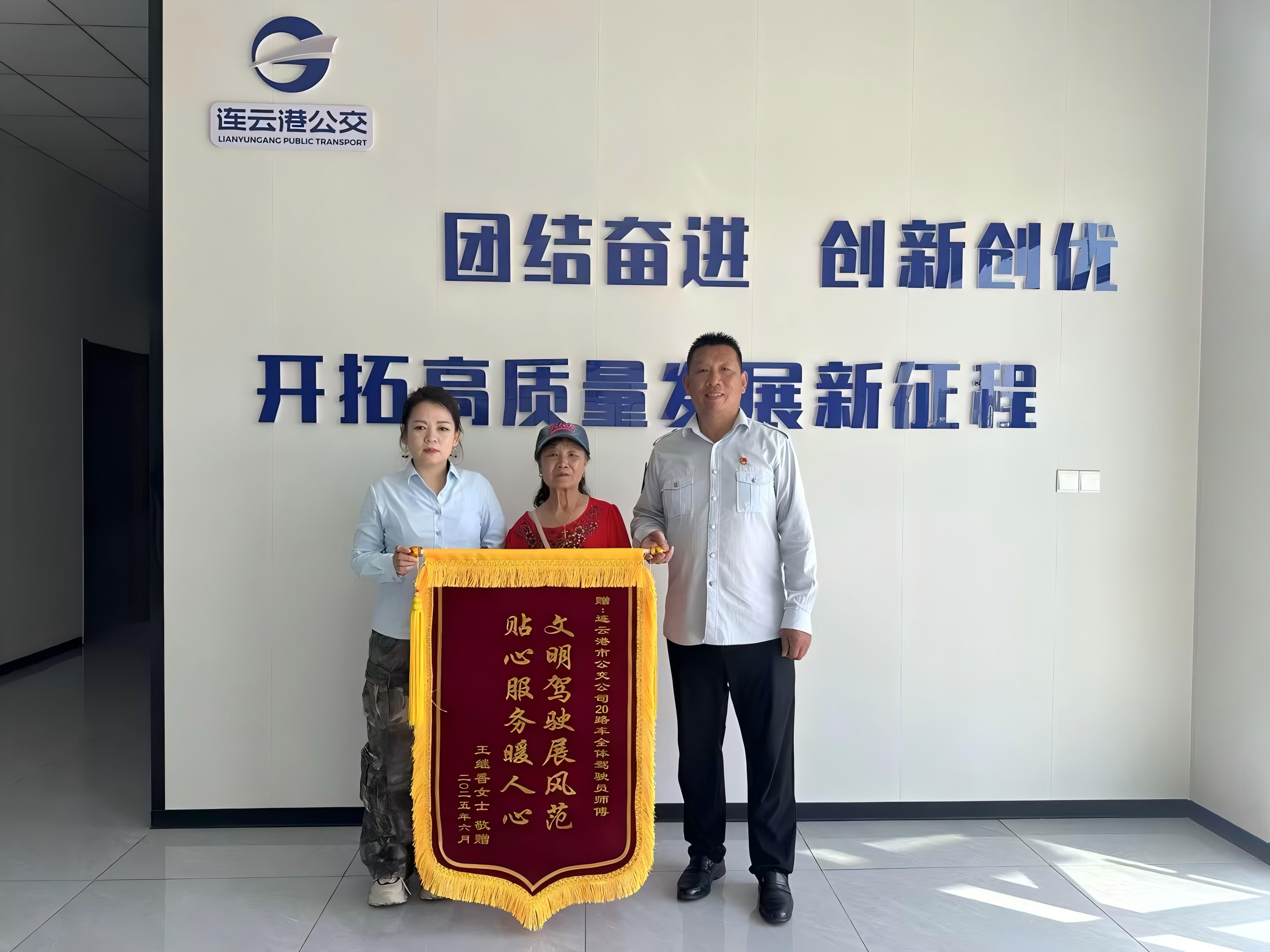 “幾百多次???,你們次次都像待親人一樣待我,這點(diǎn)心意,也替我們全體老年乘客捎上”王阿姨枯瘦的手與一雙雙厚實(shí)的手掌緊緊相握,那錦旗上“文明駕駛展風(fēng)范 貼心服務(wù)暖人心”的金字映著(zhù)暖陽(yáng),竟也如人心一般灼灼閃光。