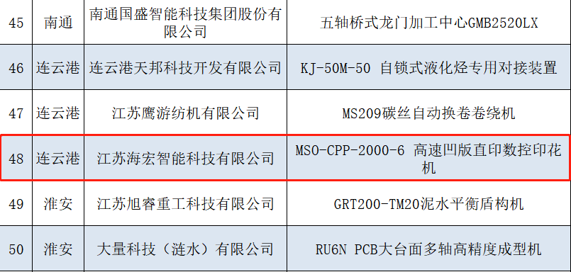 海宏科技MSO-CPP-200-6高速凹版直印數控印花機榮獲“2023年江蘇省首臺(套)重大裝備”認定