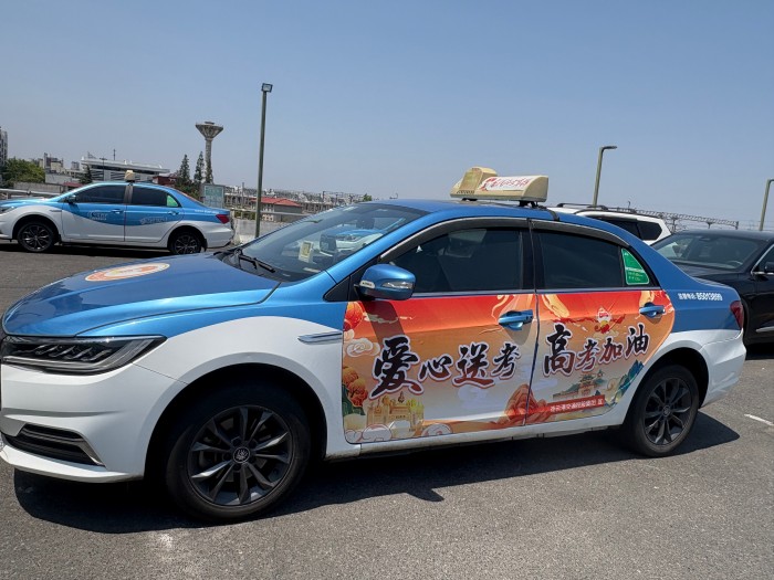 標識彰顯愛(ài)心,氛圍溫暖護航。公司為每一輛參與活動(dòng)的出租車(chē)精心張貼上醒目的愛(ài)心送考標語(yǔ)——“愛(ài)心送考,高考加油”。那鮮艷的色彩、簡(jiǎn)潔有力的文字,在城市的大街小巷傳遞著(zhù)溫暖與力量,讓每一位考生和家長(cháng)都能感受到這份來(lái)自社會(huì )的關(guān)愛(ài)與支持。