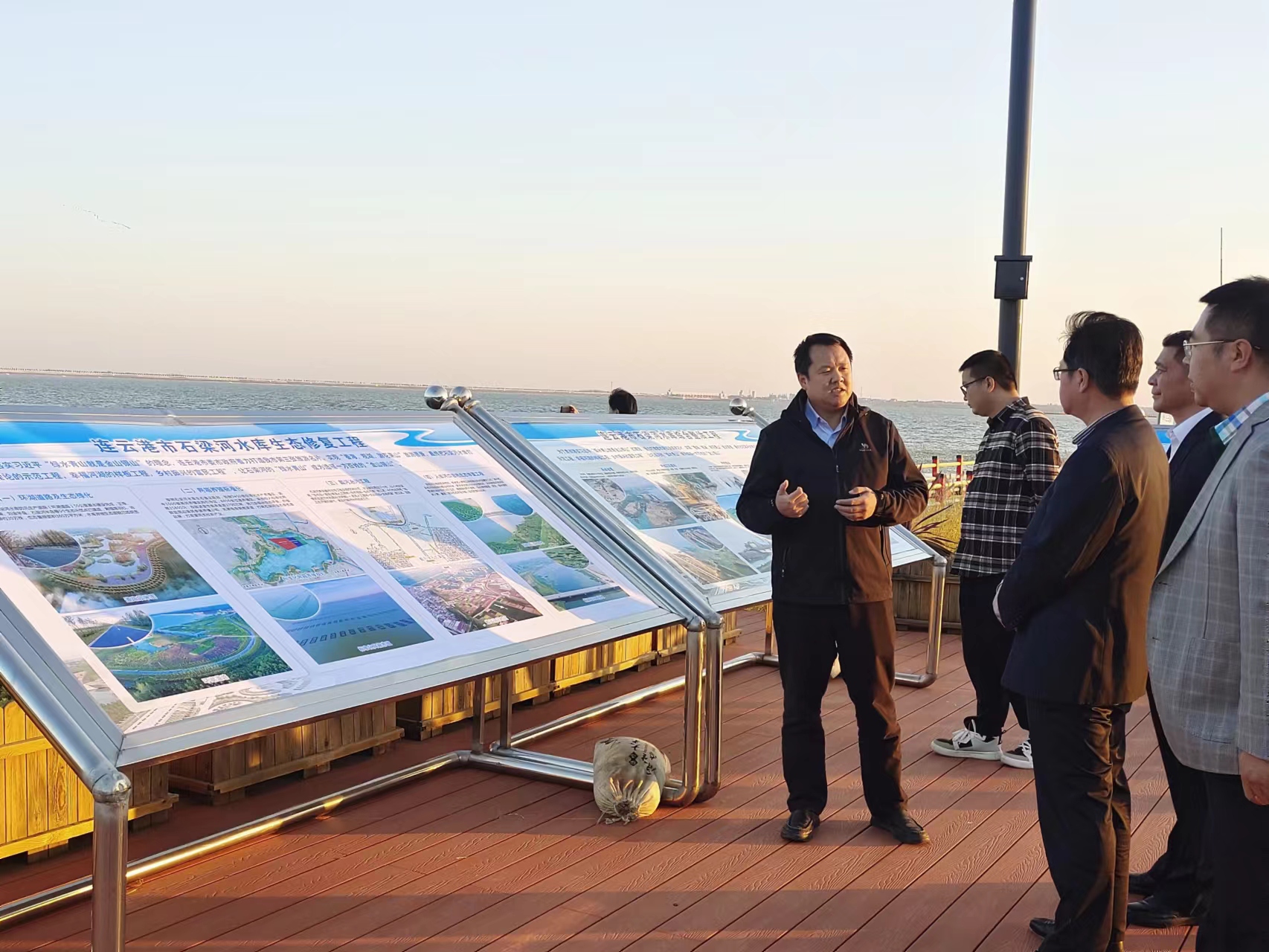 2023年11月8日丹陽(yáng)市人大一行到石梁河水庫生態(tài)修復工程漁人碼頭示范點(diǎn)觀(guān)摩調研石梁河水庫生態(tài)修復工程。贛榆區黨委及石梁河水庫生態(tài)修復工程建設處人員陪同調研。