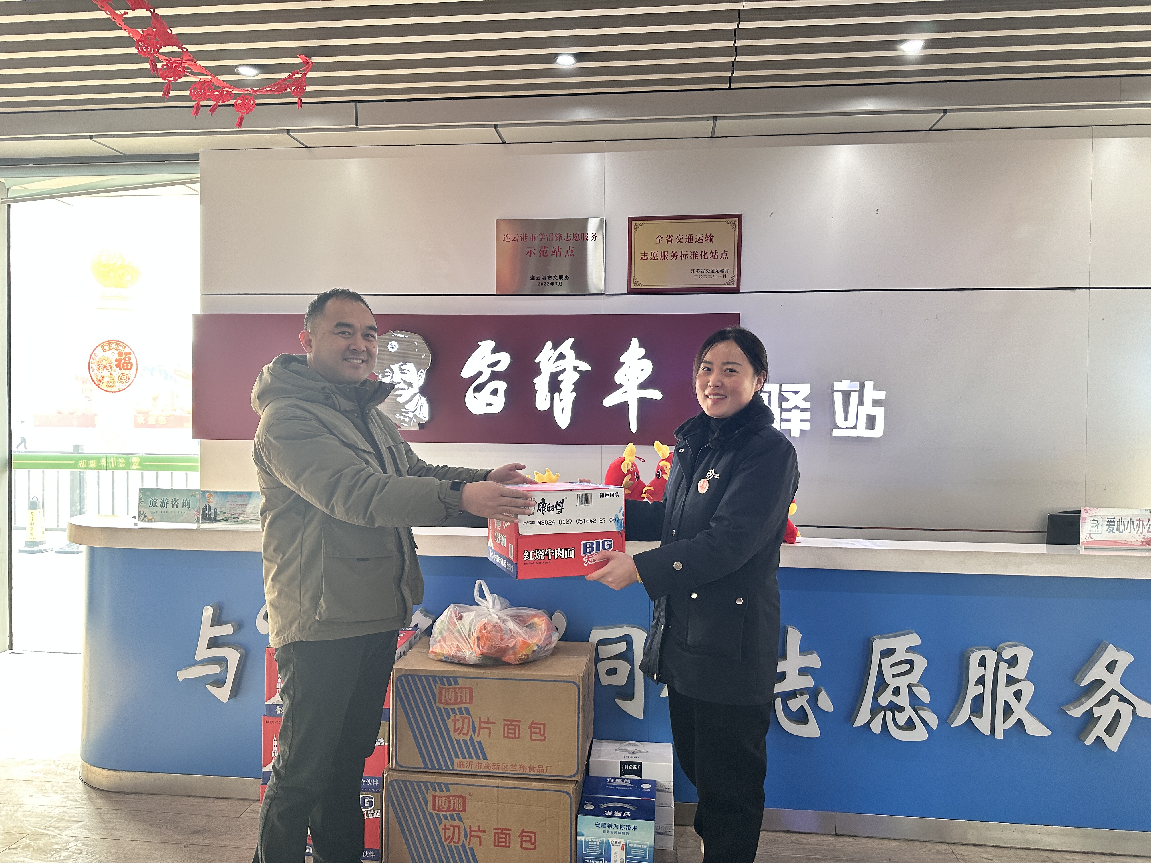 2月8日,在連云港市高鐵站“雷鋒車(chē)”驛站前,一抹抹“志愿紅”隨處可見(jiàn),她們?yōu)榧偃湛土鞲叻遄龊昧藴蕚?。汽?chē)公司工會(huì )為堅守在“雷鋒車(chē)”驛站的“雷鋒車(chē)”手們送上面包、牛奶等慰問(wèn)品,為他們送去節日慰問(wèn)與祝福。為應對客流高峰,春節假期“雷鋒車(chē)”手志愿者們要連續奮戰在高鐵站,開(kāi)展旅客幫扶、交通指引等工作。汽車(chē)公司副總經(jīng)理、工會(huì )主席張春軍表示:在春節出行客流高峰,“雷鋒車(chē)”手們堅守崗位,無(wú)私奉獻,不折不扣地落實(shí)公司的決策與部署,以群眾所需為己任,溫暖旅客回家路,展現了新時(shí)代“雷鋒車(chē)”手的風(fēng)采。