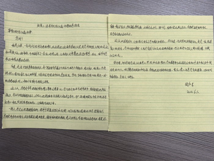 家住海州區萬(wàn)象新海苑的小錢(qián)同學(xué),也特意寫(xiě)來(lái)了一封飽含深情的感謝信。在信中,他真誠地感謝為他提供3天送考服務(wù)的徐永磊師傅。小錢(qián)說(shuō),在這緊張又充滿(mǎn)希望的三天里,徐師傅就像一位貼心的守護者,用細致入微的關(guān)懷和周到貼心的服務(wù),為他驅散了心中的緊張與不安,讓他能夠心無(wú)旁騖地追逐夢(mèng)想。徐師傅的付出和奉獻,讓他真切地感受到了社會(huì )的溫暖和美好,也讓他更加堅定了努力拼搏、回報社會(huì )的決心。