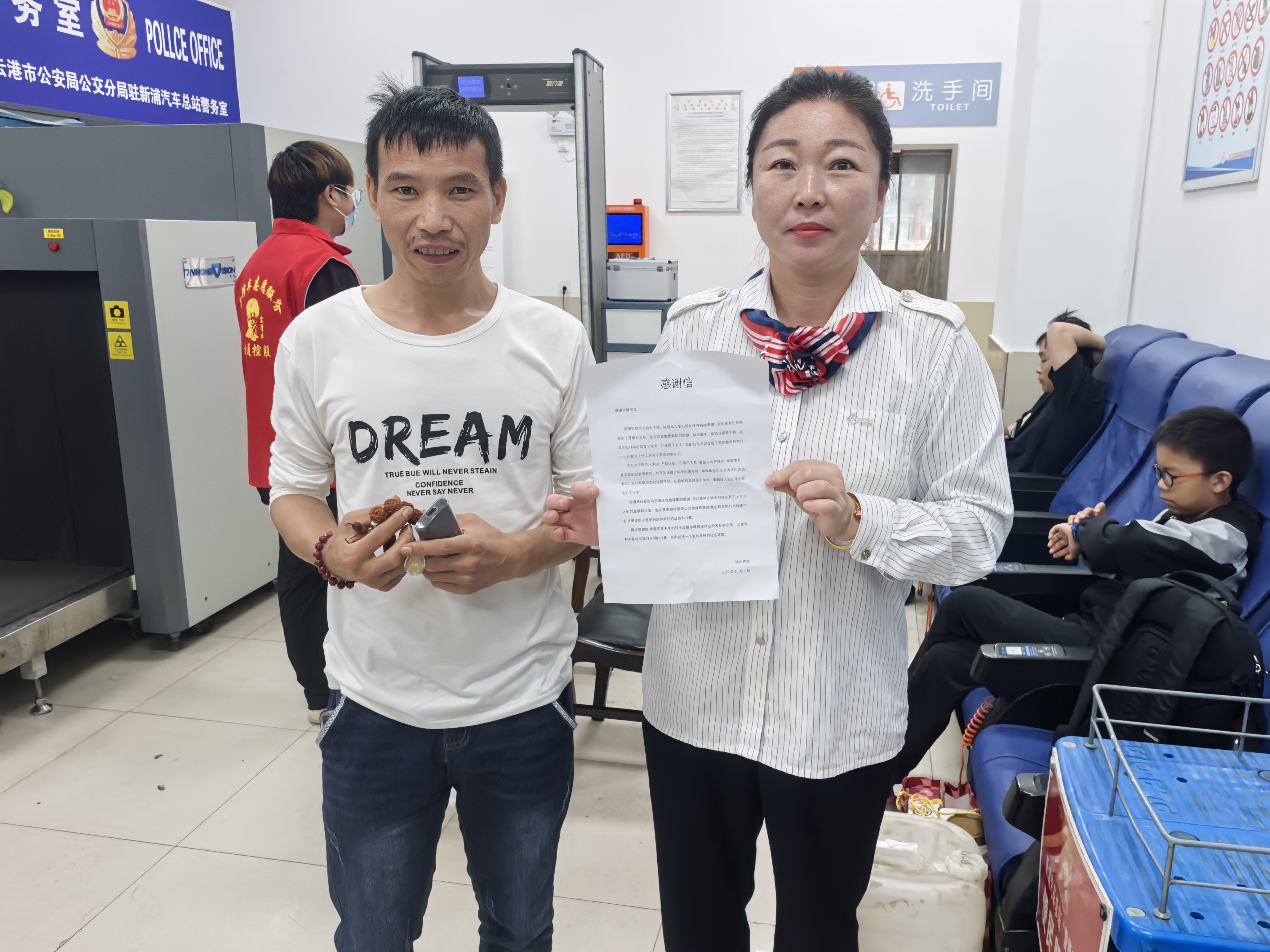 10月1日,中秋國慶雙節首日的連汽新浦汽車(chē)總站候車(chē)大廳里,人潮比往常更密?!袄卒h車(chē)”手朱靜剛幫一位抱孩子的旅客找到座位,轉身整理閑置座椅時(shí),突然發(fā)現一部套著(zhù)藍色殼的智能手機,屏幕還亮著(zhù)鎖屏界面,顯然是剛落下沒(méi)多久。