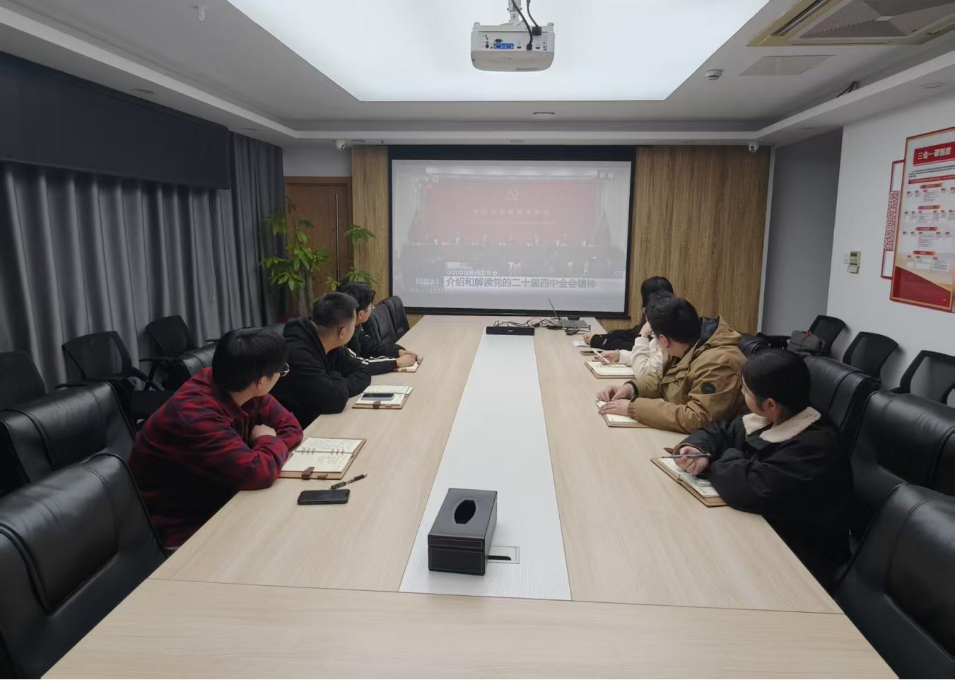 1029午,明茂公司團支部全體團員在公司黨員活動(dòng)室集中觀(guān)看了介紹和解讀黨的二十屆四中全會(huì )精神的新聞發(fā)布會(huì )視頻,共同學(xué)習領(lǐng)會(huì )黨的二十屆四中全會(huì )精神,準確把握國家十五五規劃部署的核心要義。