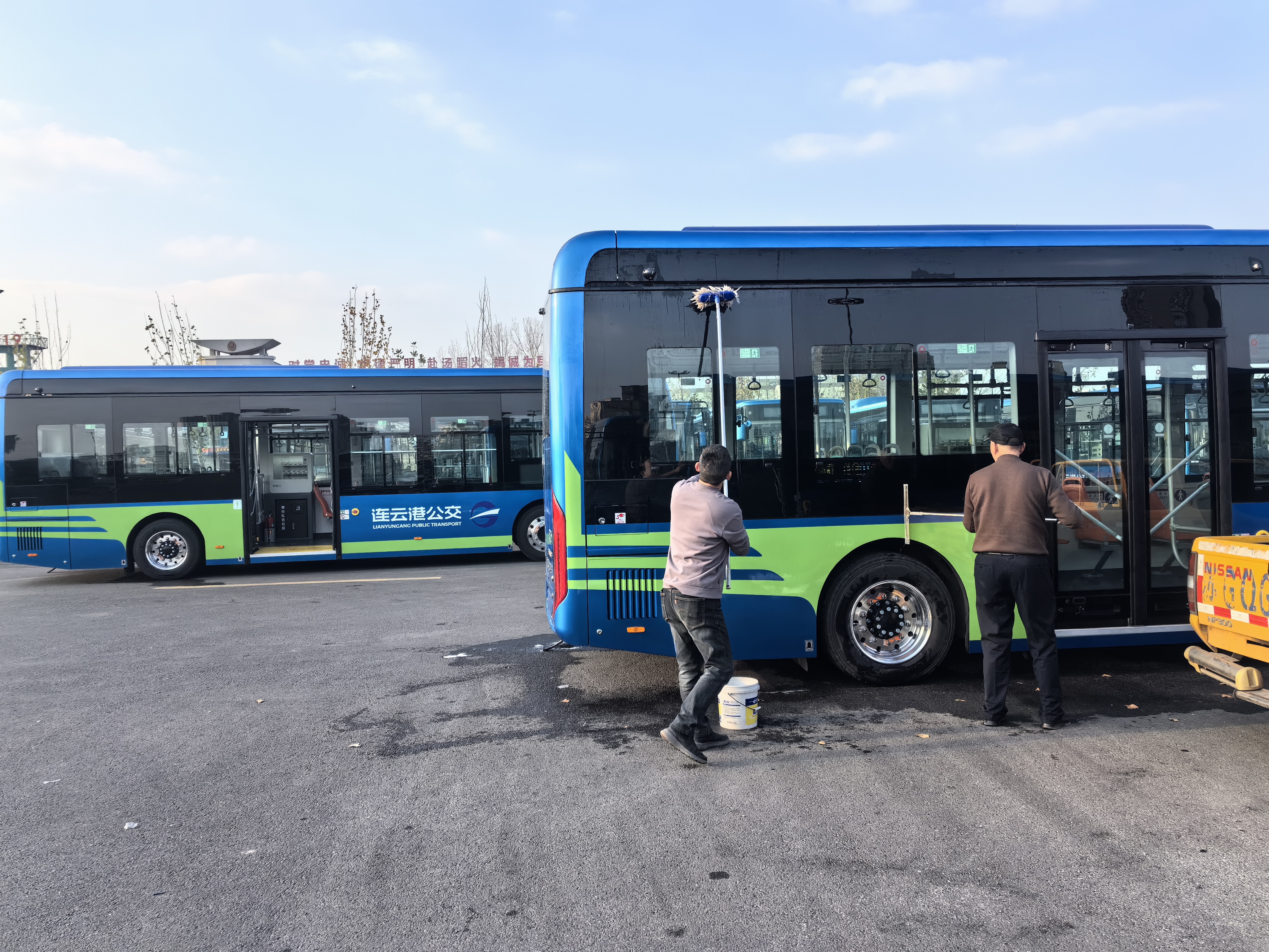 12月11日,在公交集團財校公交場(chǎng)站看到,一輛輛嶄新的新能源公交車(chē)依次停放,工作人員忙碌著(zhù)調試投幣機等設施設備,并對車(chē)輛內外進(jìn)行全面擦洗,為第二天的新車(chē)投入運營(yíng)進(jìn)行著(zhù)最后的準備。新購置的公交車(chē)依舊延續著(zhù)特有的“公交藍”為主基調,不僅有較長(cháng)的車(chē)身和低踏板設計,使得車(chē)廂顯得寬敞、明亮,更有著(zhù)很多人性化的設計理念,如手機充電設施、自動(dòng)售賣(mài)機等便民服務(wù)設施,可謂是“顏值”和“實(shí)用”并存,使市民出行乘坐更為便捷。