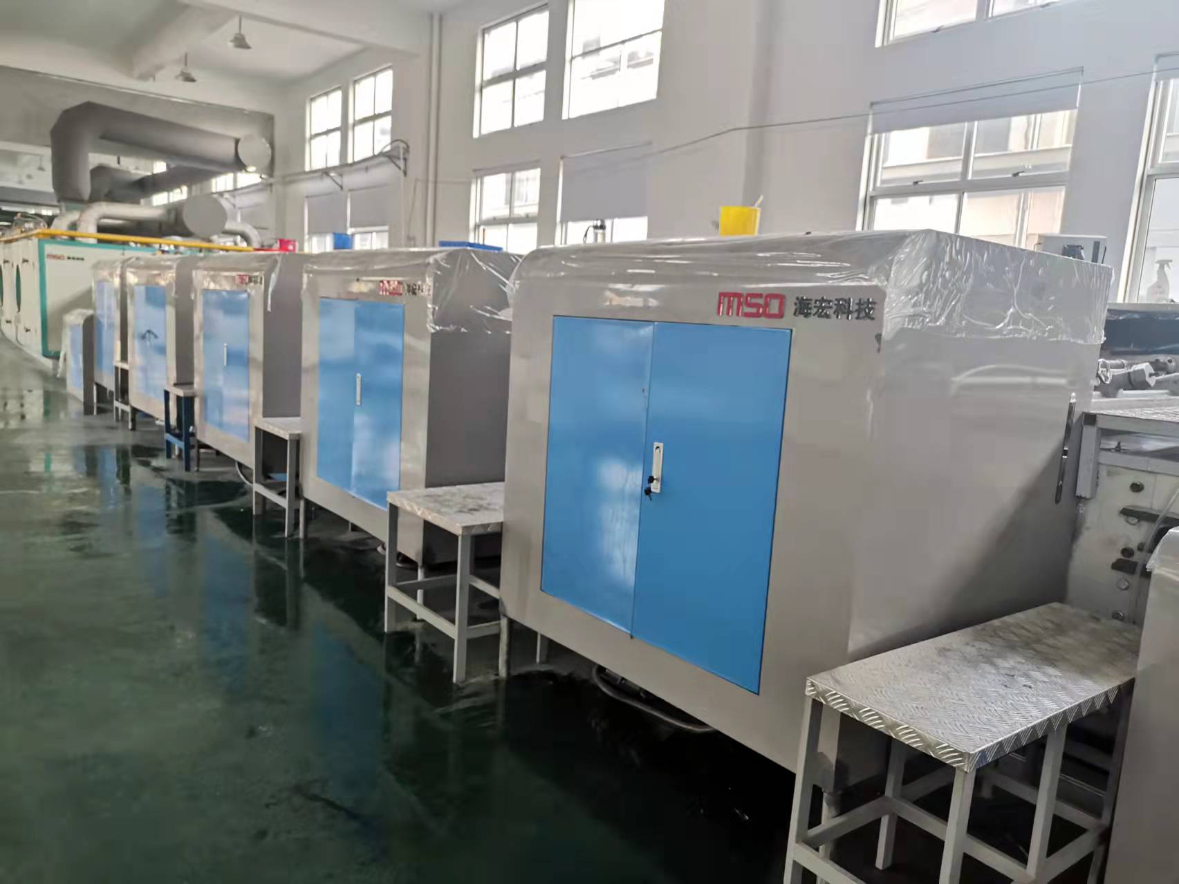 投產(chǎn)的生產(chǎn)設備MSO高速凹版印花機是海宏科技自主研發(fā)的印花設備,采用公司核心高端數控系統,解決了高速精準套印,快速換版、套間疊色等一系列核心技術(shù)問(wèn)題。設備的8大技術(shù)創(chuàng )新,解決了紡織印染行業(yè)的高污染、高能耗等環(huán)保問(wèn)題,真正實(shí)現零污染,零排放,綠色印花。