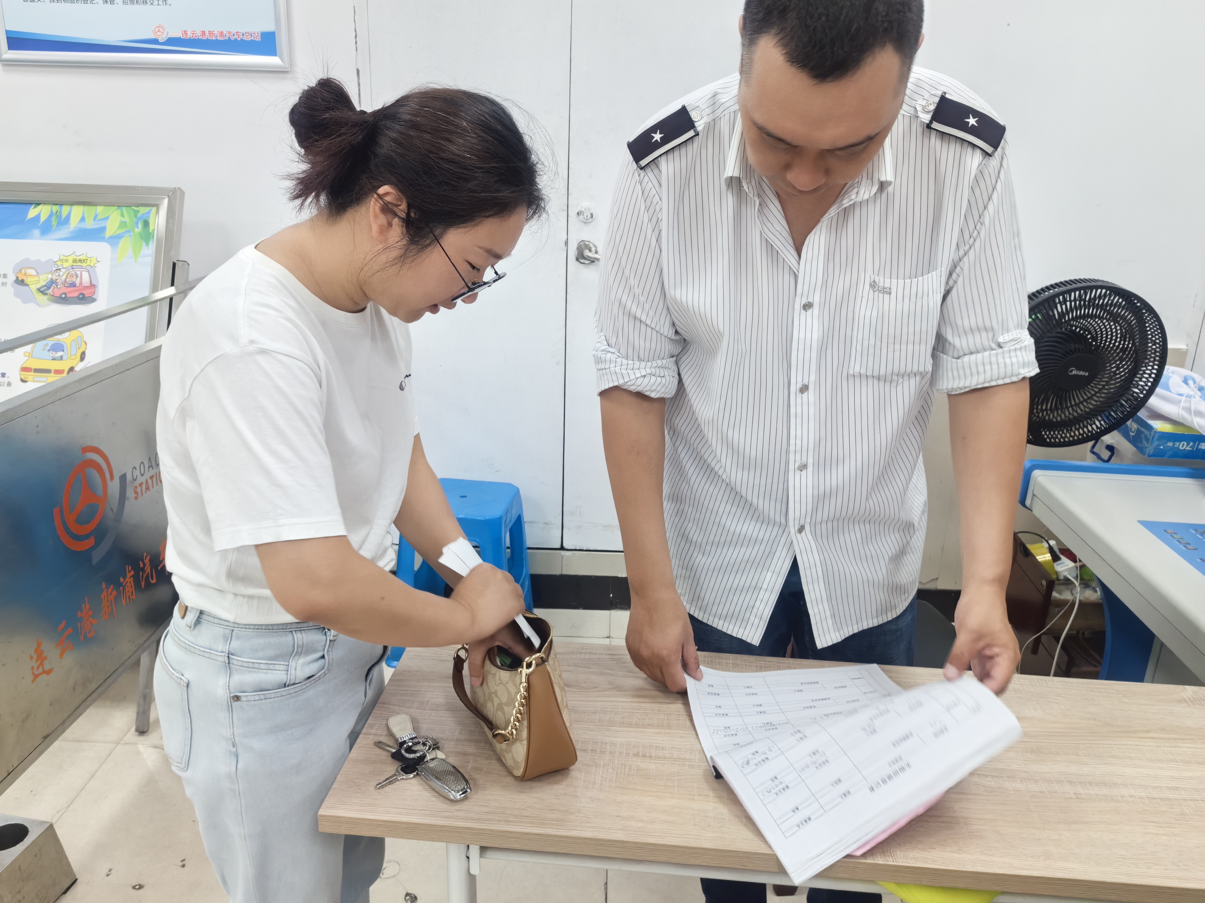 當日下午,王建國駕駛機場(chǎng)巴士從花果山機場(chǎng)發(fā)往市區,抵達新浦汽車(chē)總站后,按照慣例對車(chē)廂進(jìn)行清潔。在整理后排座位時(shí),他發(fā)現一個(gè)手提包遺落在座位上,此時(shí)旅客已全部下車(chē)離開(kāi)。王建國第一時(shí)間檢查物品,發(fā)現包內有現金若干、個(gè)人身份證件和銀行卡等重要個(gè)人物品,他立即將手提包送至總站“雷鋒車(chē)”組服務(wù)臺,交由工作人員登記保管。