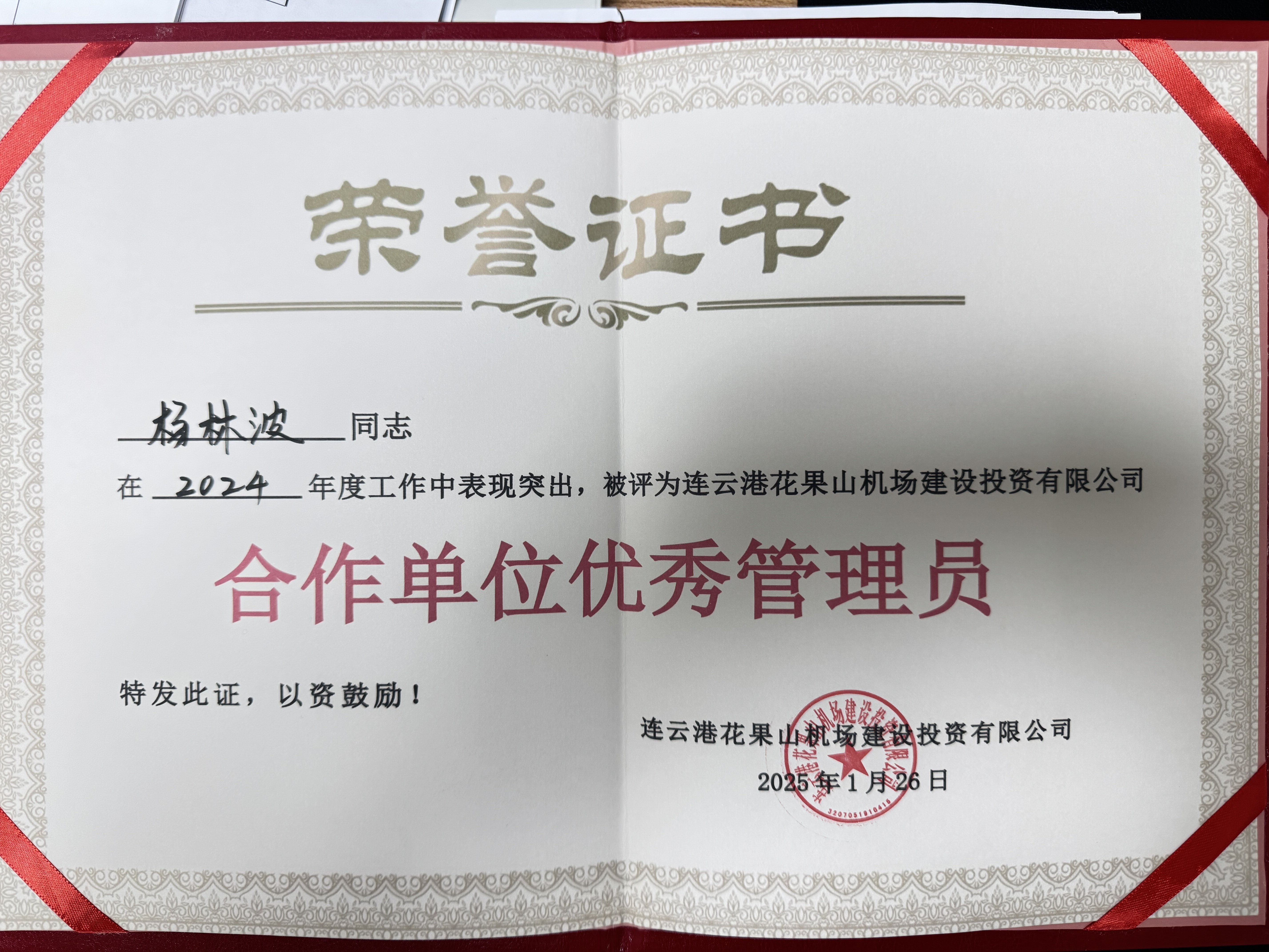 近日,連汽定制客運事業(yè)部機場(chǎng)班管理員楊林波憑借出色表現,榮獲連云港花果山機場(chǎng)建設投資有限公司頒發(fā)的“合作單位優(yōu)秀管理員”榮譽(yù)證書(shū)。這一榮譽(yù)不僅屬于楊林波個(gè)人,更是對整個(gè)機場(chǎng)班團隊優(yōu)質(zhì)服務(wù)與敬業(yè)精神的高度認可。