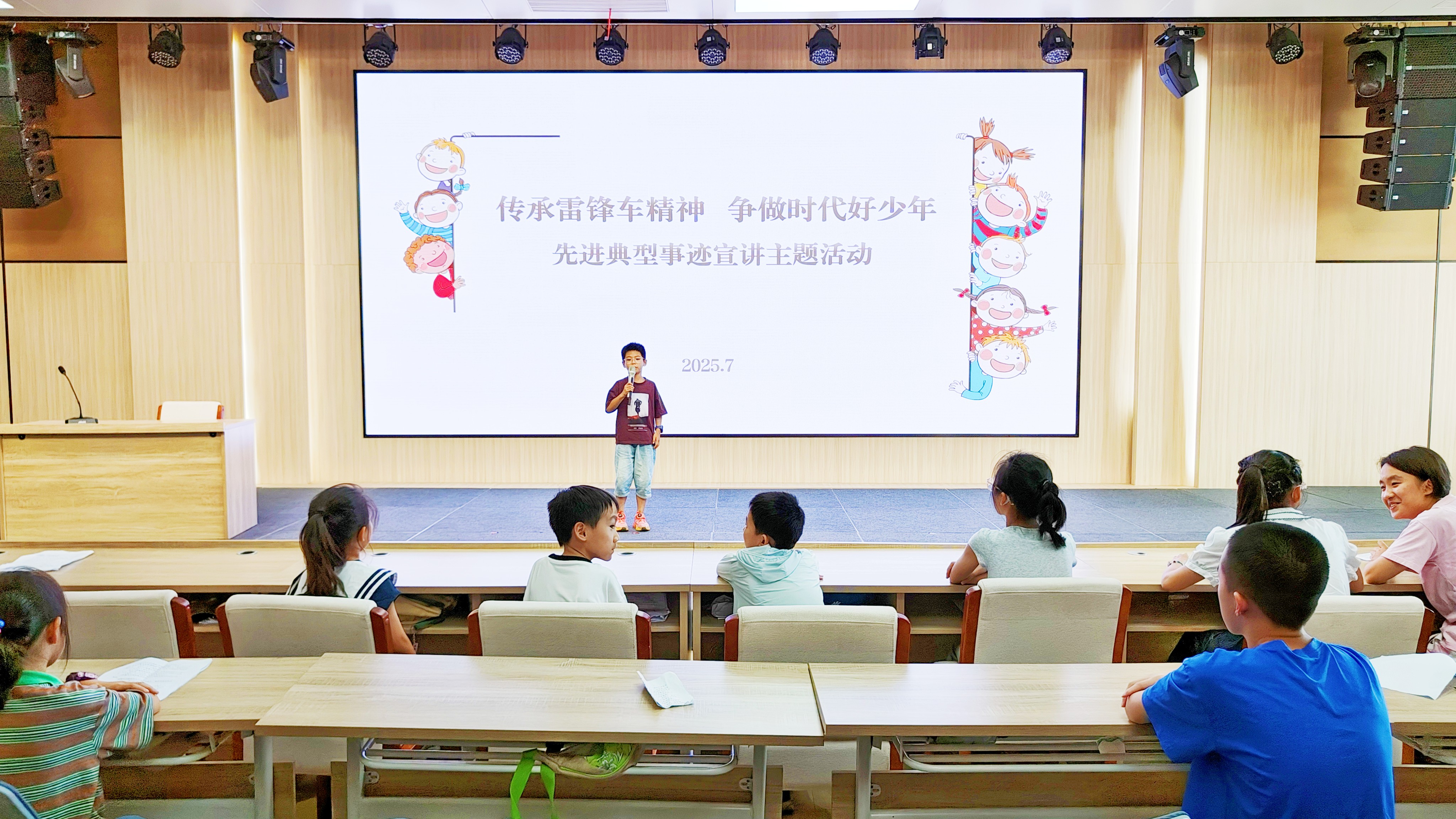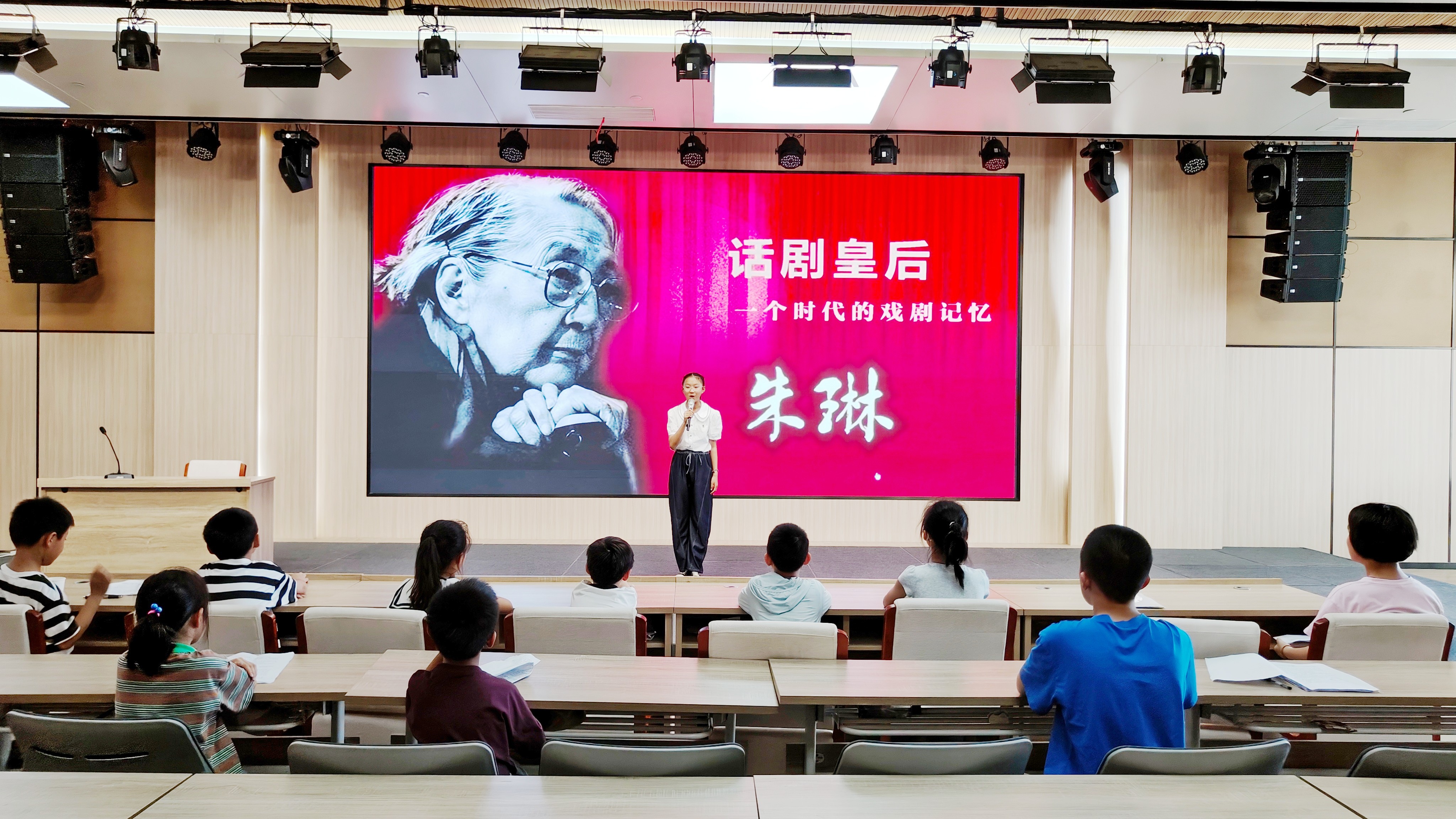 除了“雷鋒車(chē)”組的先進(jìn)事跡,邱果小朋友還和大家分享了“中國話(huà)劇皇后”朱琳的生平故事。從朱琳對藝術(shù)事業(yè)的不懈追求,到在舞臺上塑造的經(jīng)典形象,再到始終堅守的藝術(shù)初心與社會(huì )責任,邱果通過(guò)講述與視頻相結合的方式帶領(lǐng)大家走進(jìn)這位藝術(shù)家的精神世界,感受她用一生詮釋的敬業(yè)與堅守,贏(yíng)得臺下聽(tīng)眾的陣陣掌聲。