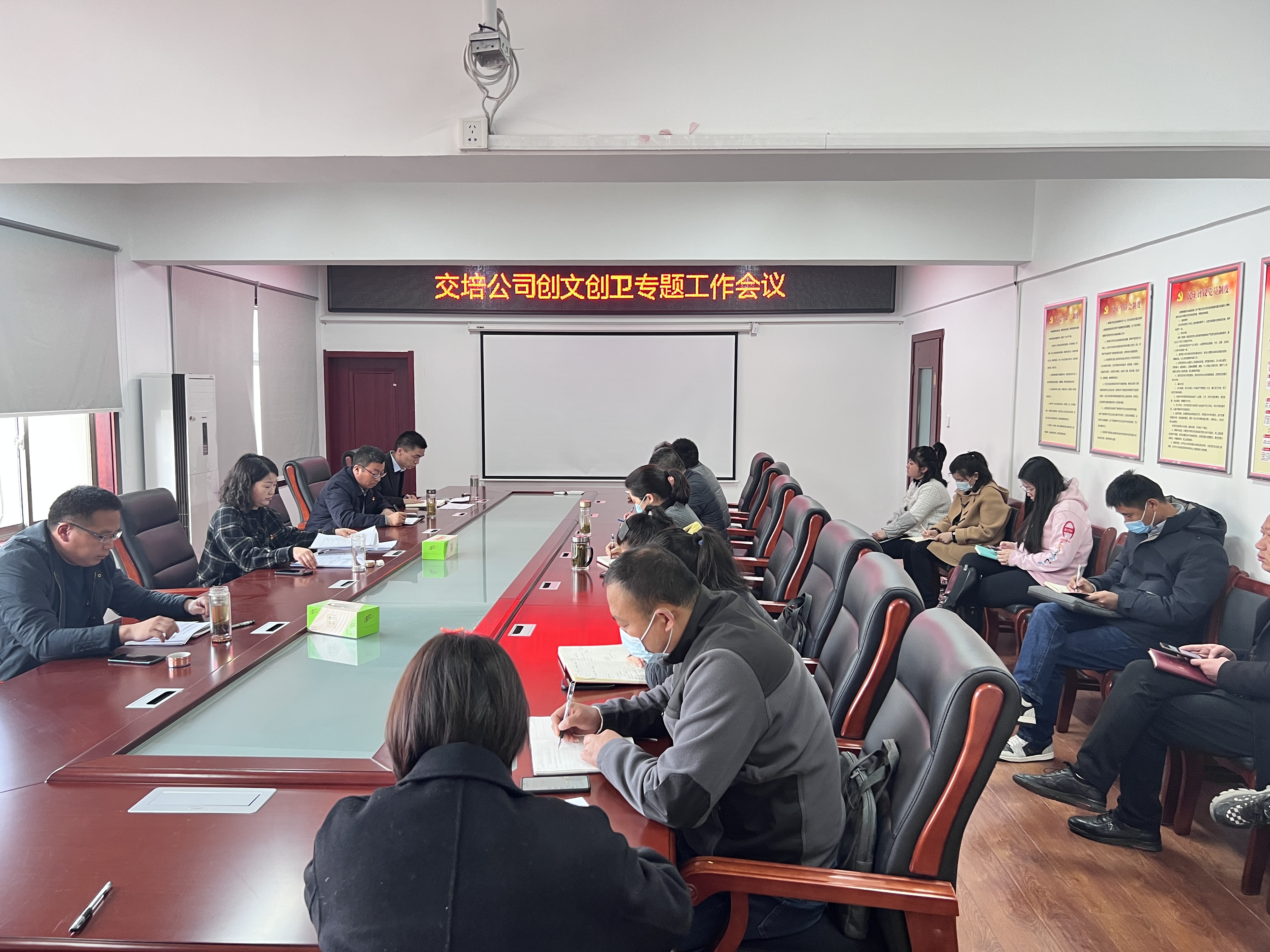 3月15日,交培公司召開(kāi)文明城市衛生城市創(chuàng )建專(zhuān)題工作會(huì )議。公司領(lǐng)導班子及全體中層管理人員參加,會(huì )議由公司副總經(jīng)理張華主持。