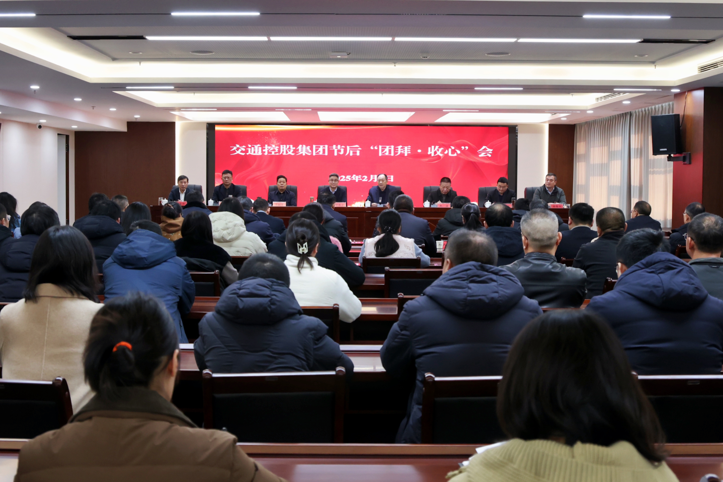 2月5日上午,市交通控股集團組織召開(kāi)節后“團拜·收心”會(huì ),會(huì )議旨在動(dòng)員全體干部職工統一思想、提振精神、整裝待發(fā),以飽滿(mǎn)的熱情、昂揚的斗志、實(shí)干的作風(fēng),為2025年工作開(kāi)好頭、起好步。集團黨委書(shū)記、董事長(cháng)仲偉濤出席會(huì )議并講話(huà),集團總經(jīng)理孫中華主持會(huì )議。集團領(lǐng)導班子成員、各單位黨政主要負責人、各部門(mén)主要負責人及集團總部全體人員參加會(huì )議。