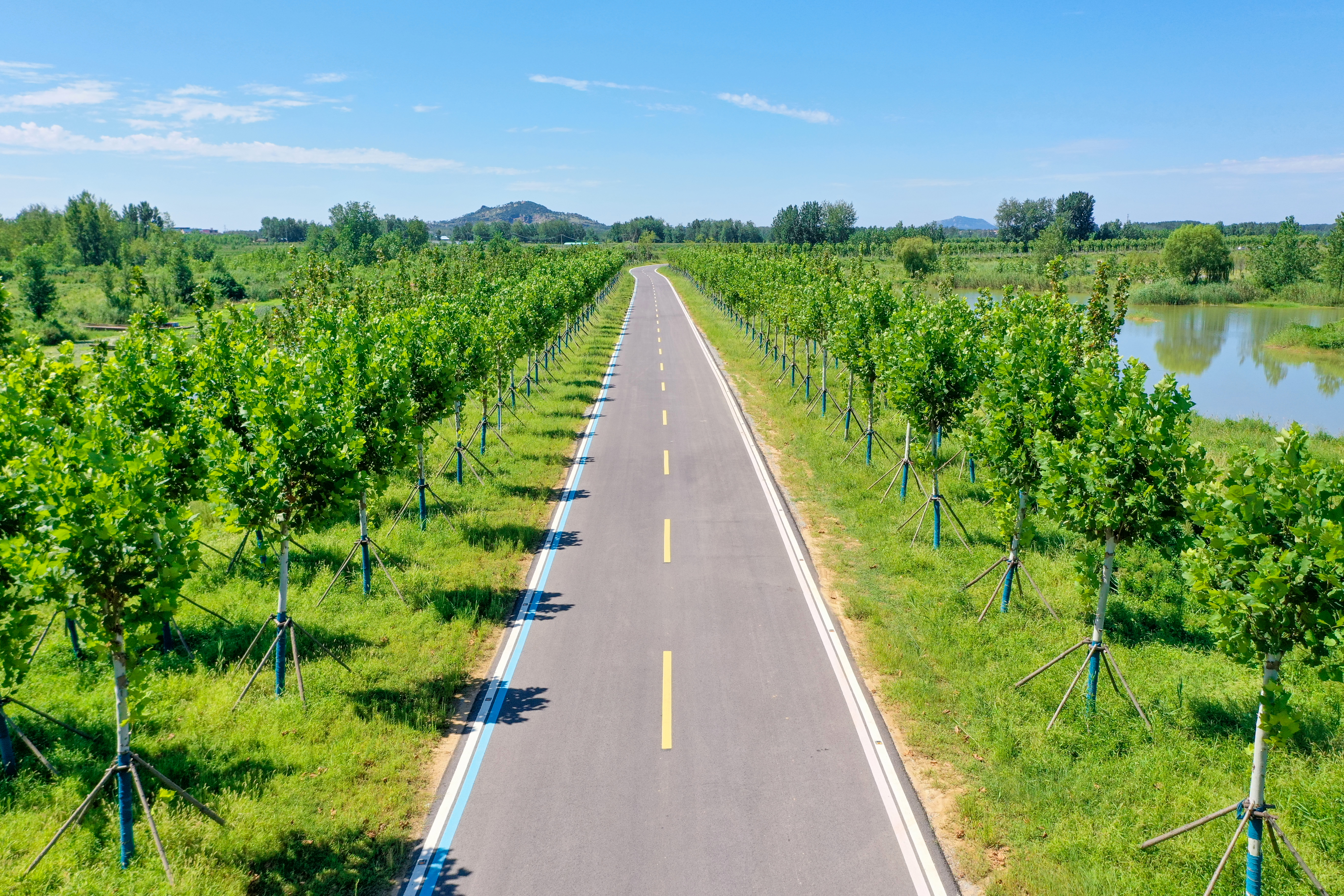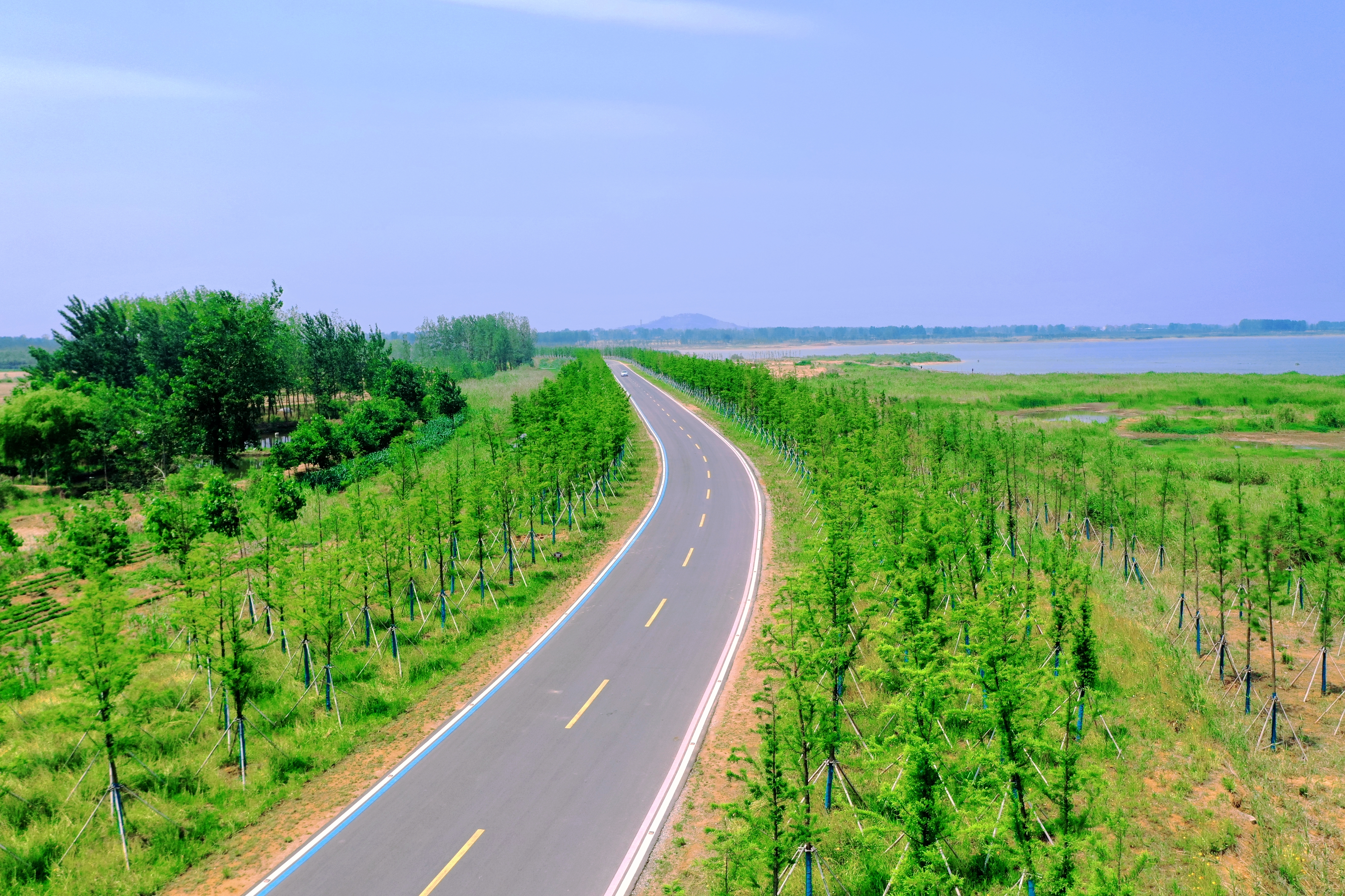 環(huán)湖路是石梁河水庫生態(tài)修復一期工程的重要組成部分,全線(xiàn)貫通的環(huán)湖路,成功串聯(lián)了沿線(xiàn)36個(gè)村莊,實(shí)現了村村通達、村村受益。這樣一條路,過(guò)硬的工程質(zhì)量、超高的施工效率、全面的管護措施只是其基本屬性,美麗才是它的最鮮明特色。集團以環(huán)湖路沿線(xiàn)為基礎向外延伸,完成了380萬(wàn)平方米的生態(tài)復綠,沿路行駛,前有夜光道釘,上有鷗鷺翔集,旁有牛羊漫步,近有草木豐茂,遠有粼波澄澈……兼具道路美、風(fēng)景美、生態(tài)美、多元美、發(fā)展美的環(huán)湖路,達成了“一步一景”、“路在景中”、“景即是路”的美好和諧氛圍,已成為短途游的“網(wǎng)紅”道路。