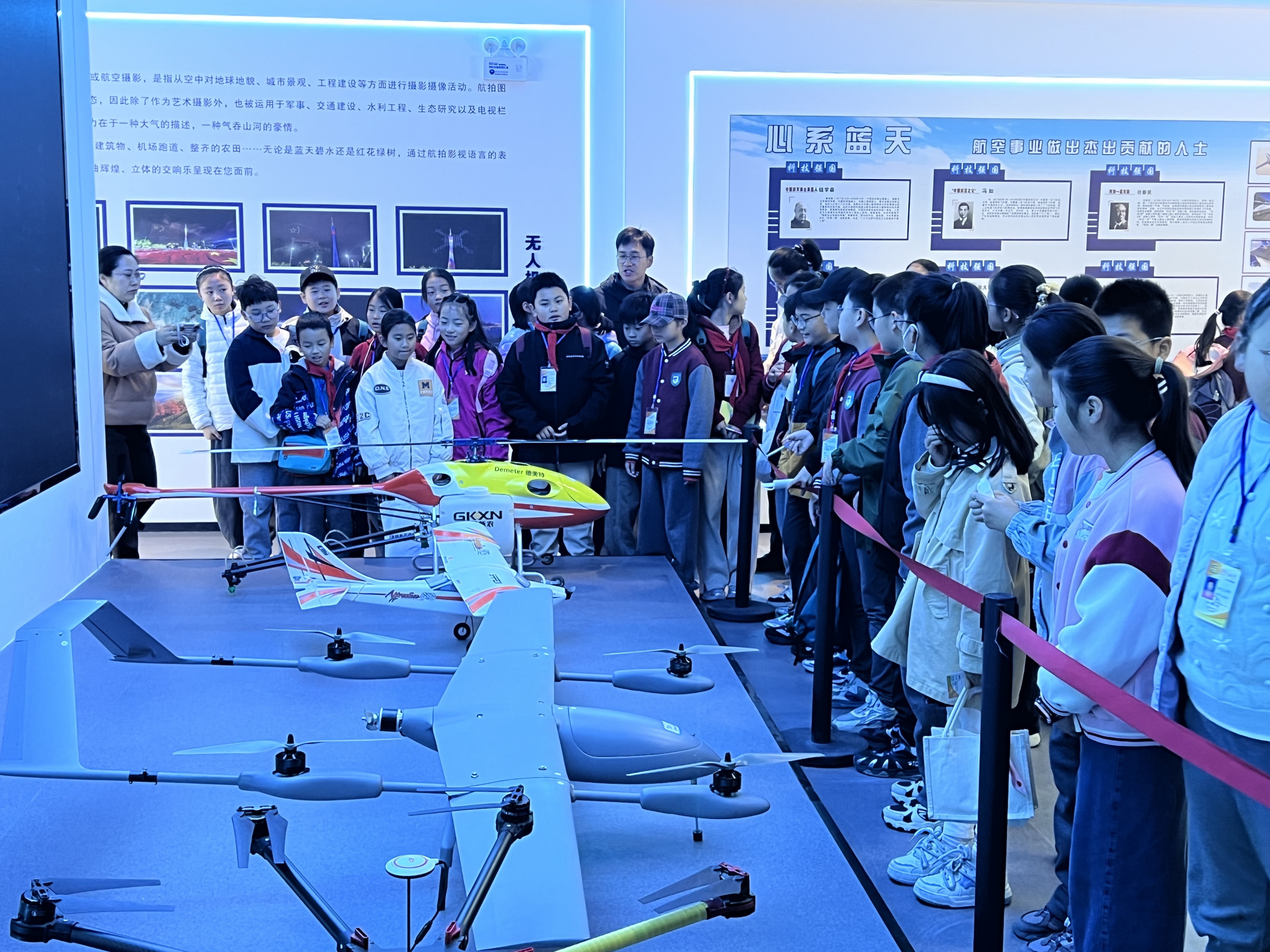 步入展館,農業(yè)植保、應急救援、航拍、迷你偵察等各類(lèi)無(wú)人機整齊陳列,全面覆蓋多領(lǐng)域應用場(chǎng)景。在講解員的專(zhuān)業(yè)引導下,小記者們系統了解無(wú)人機的發(fā)展歷程、技術(shù)原理及核心功能,借助圖文展板、動(dòng)態(tài)演示視頻等載體,直觀(guān)認識到無(wú)人機在農業(yè)生產(chǎn)、環(huán)境保護、災害救援、城市管理等領(lǐng)域的實(shí)用價(jià)值。原來(lái)無(wú)人機能幫消防員偵察火情,還能給偏遠山區送物資!穆凡同學(xué)難掩好奇,頻頻舉手提問(wèn),現場(chǎng)學(xué)習氛圍熱烈。