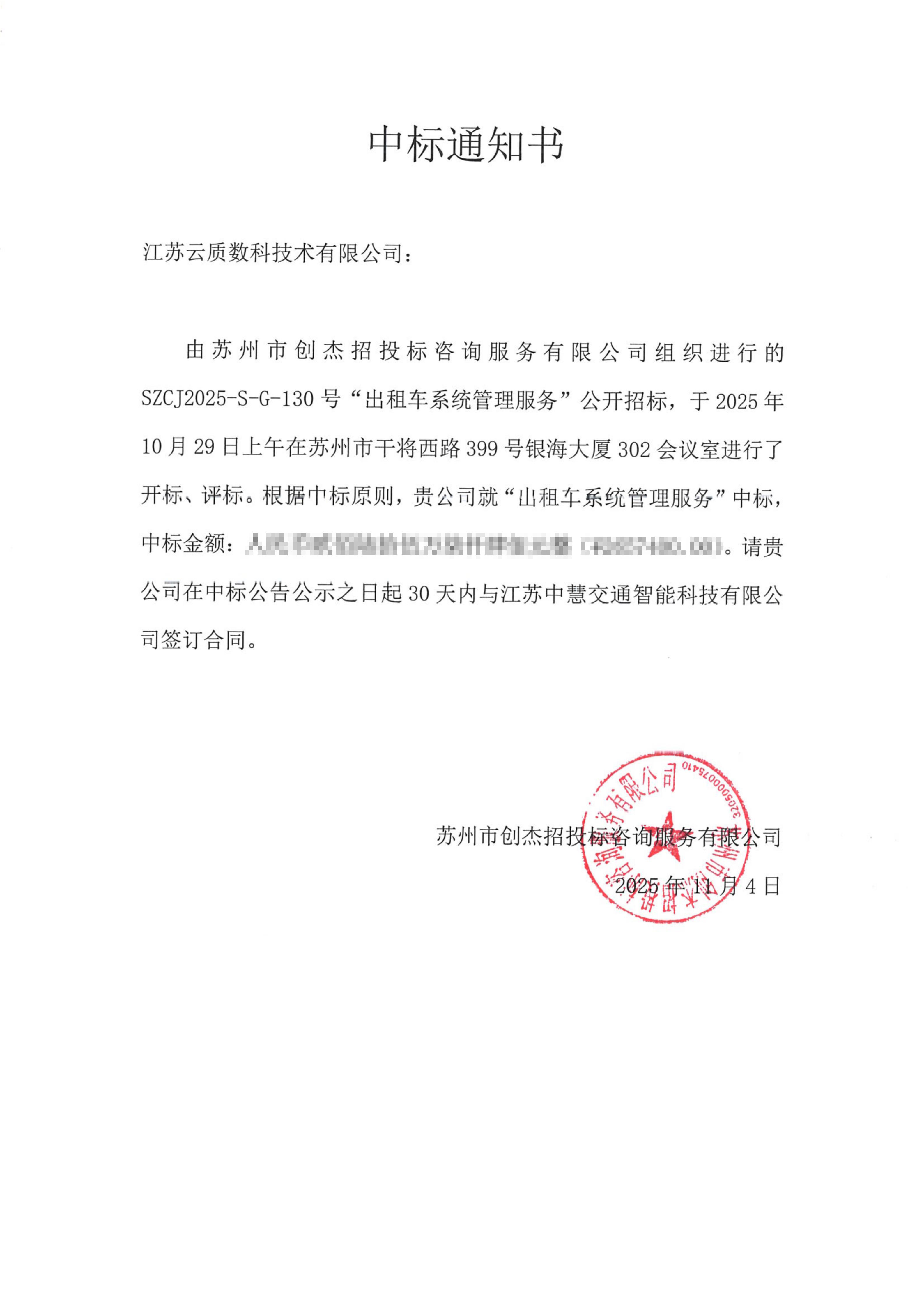 數科公司交通運維事業(yè)部中標蘇州出租車(chē)系統服務(wù)項目
