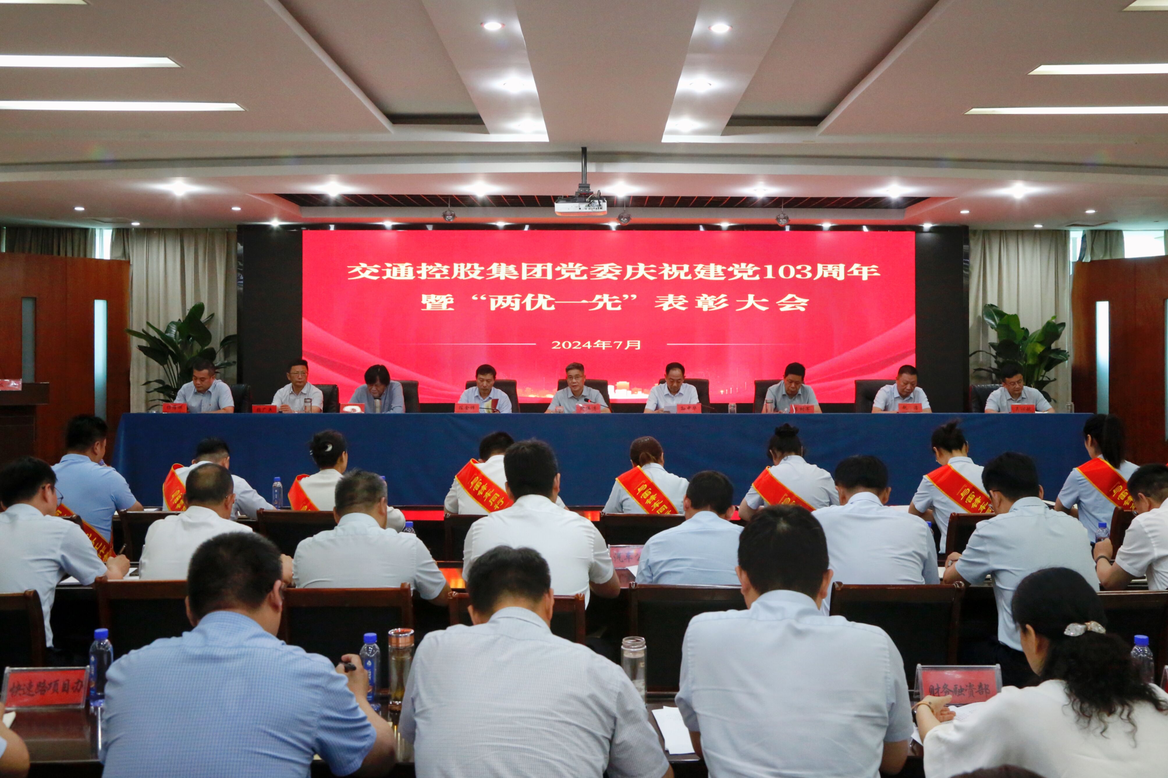 為了熱烈慶祝中國共產(chǎn)黨成立103周年,7月1日下午,交通控股集團黨委召開(kāi)慶祝建黨103周年暨“兩優(yōu)一先”表彰大會(huì )。集團領(lǐng)導班子成員、派駐紀檢組領(lǐng)導,各部門(mén)負責人、權屬企業(yè)黨政主要負責人、黨群工作部負責人以及受表彰代表共70余人參加了會(huì )議。集團總經(jīng)理、黨委副書(shū)記孫中華主持會(huì )議。