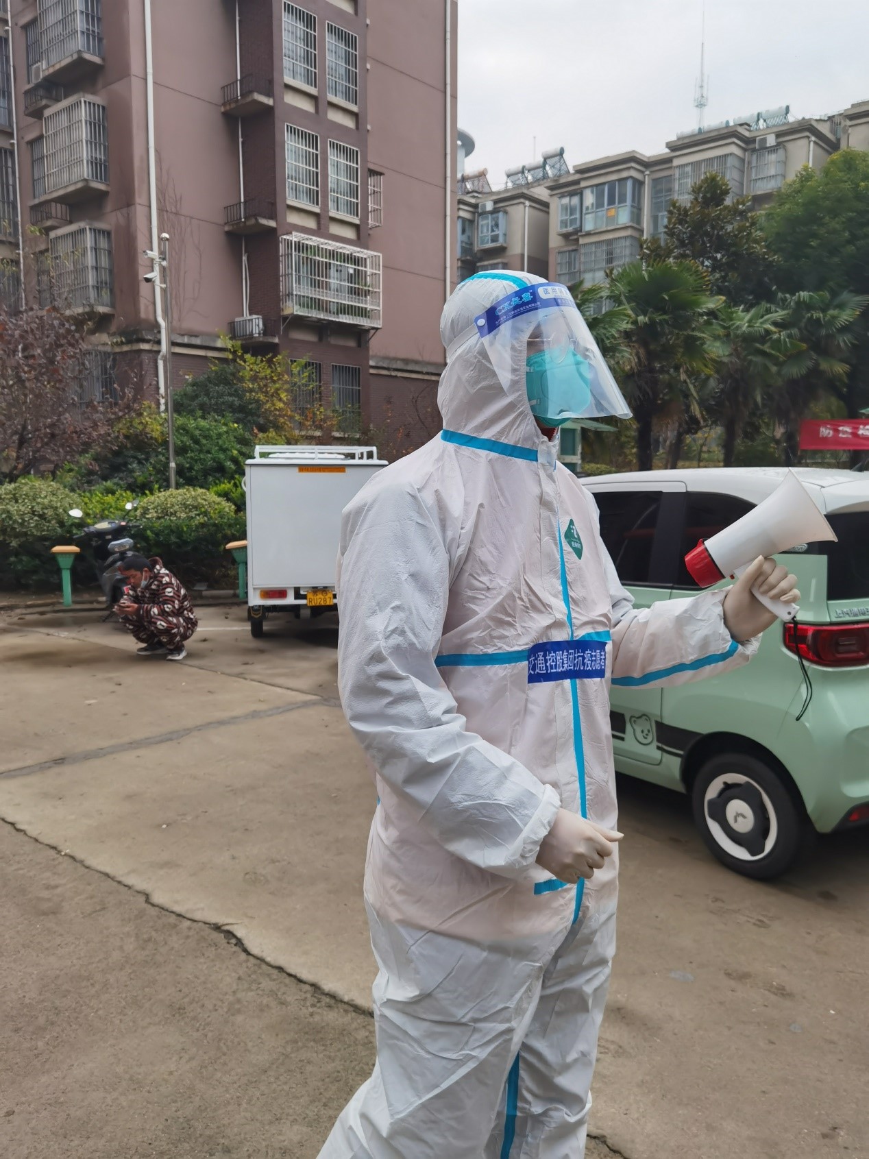 “請未做核酸的居民,抓緊下樓做核酸,謝謝配合我們的工作?!蔽锪骷瘓F云濟公司的“95后”王迪正帶著(zhù)擴音喇叭挨個(gè)樓棟進(jìn)行“掃樓”??箵粢咔橐堰M(jìn)入攻堅階段,務(wù)必保證核酸全覆蓋。于是王迪每天總是第一個(gè)到點(diǎn)位,顧不上吃早飯便開(kāi)始“掃樓”,每天上下樓梯幾十趟,結束后又主動(dòng)參與維持現場(chǎng)排隊秩序,提醒小區居民保持安全距離和戴好口罩,協(xié)助掃碼登記,等到一天繁忙的工作結束后汗水早已濕透防護服。